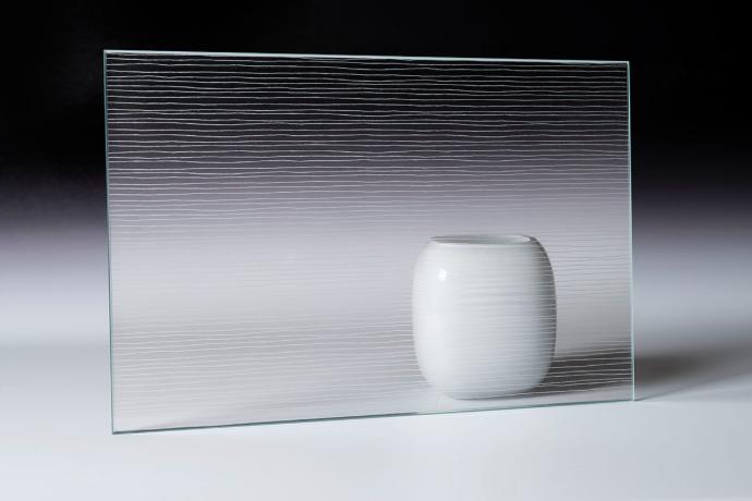 Uz našu inovativnu micro ETCH tehniku u mogućnosti smo proizvesti dizajn po želji sa poluprozirnom ili glatkom satenskom završnom obradom. Sama površina stakla je izdržljiva na vanjske utjecaje i pruža dugotrajno rješenje. Naše kolekcije nude bezbroj varijanti uzoraka kada se kombiniraju s ostalim tehnikama i tehnologijama koje koristimo. U kombinaciji s uzorkom ogledala rezultat je predivno dekorativno staklo koje omogućava svjetlosti da prolazi kroz njega zadržavajući privatnost.