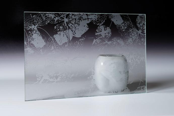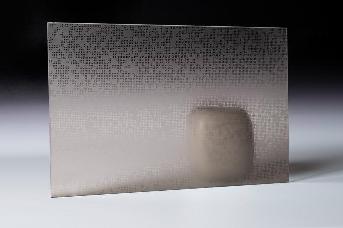 Uz našu inovativnu micro ETCH tehniku u mogućnosti smo proizvesti dizajn po želji sa poluprozirnom ili glatkom satenskom završnom obradom. Sama površina stakla je izdržljiva na vanjske utjecaje i pruža dugotrajno rješenje. Naše kolekcije nude bezbroj varijanti uzoraka kada se kombiniraju s ostalim tehnikama i tehnologijama koje koristimo. U kombinaciji s uzorkom ogledala rezultat je predivno dekorativno staklo koje omogućava svjetlosti da prolazi kroz njega zadržavajući privatnost.